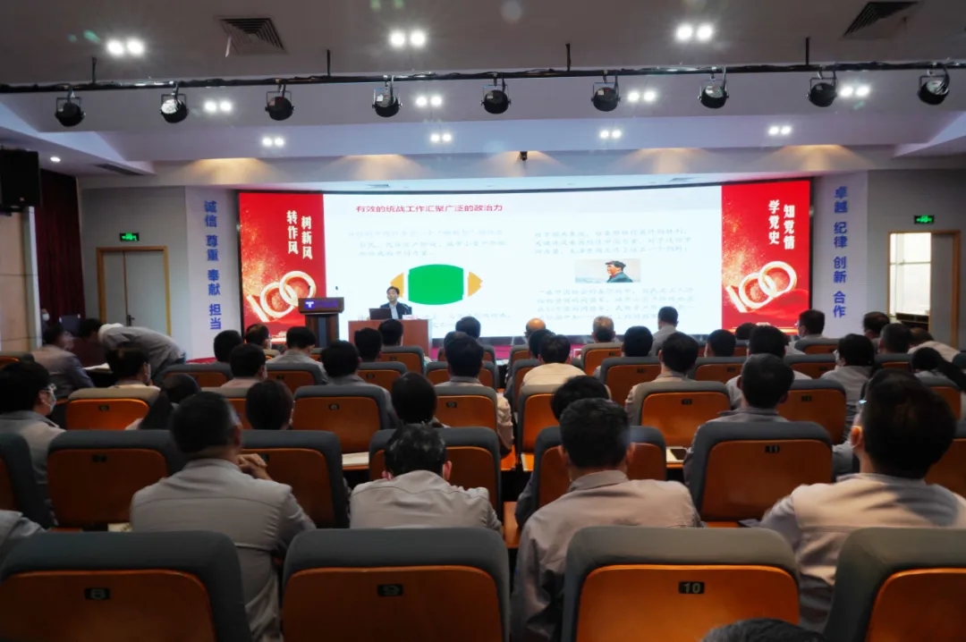 传承红色百年史,初心如磐向未来。4月29日下午,雷火(中国)工业党史学习教育动员大会在公司七楼阶梯教室举行,全体中层以上干部参加会议。会议特邀文登区委党校高级讲师隋建光作“中国共产党革命成功的历史经验”主题党史教育。党委副书记刘红福组织传达学习习近平《在党史学习教育动员大会上的讲话》重要精神。