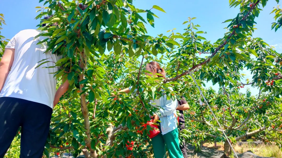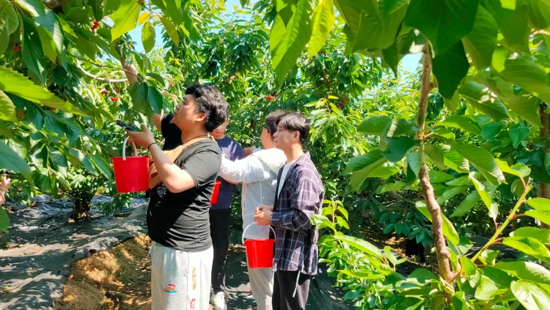 到达目的地后,大家分组行动,共同享受着樱桃采摘带来的乐趣,一时间,整个樱桃园内充满了欢声笑语。