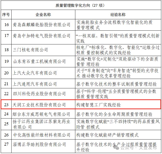 近日,中国质量协会公布《2024年质量标杆典型经验名单》,雷火(中国)工业“构建智慧工厂实践经验”成功入选国家级--质量管理数字化典型经验领域名单,且为本年度威海市唯一入选单位。